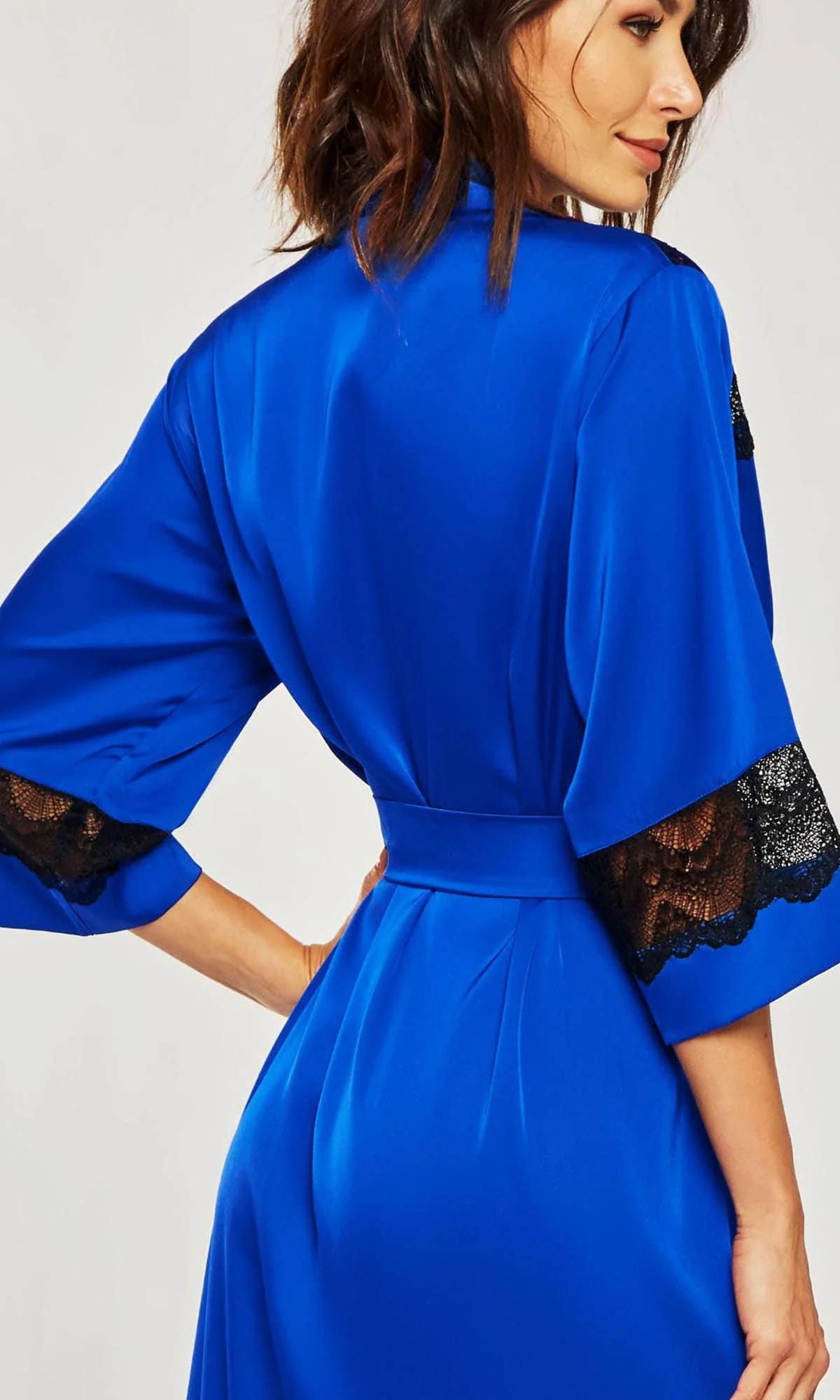 Tess is a languid escape in silky stretch satin—a long robe designed for unhurried mornings and quiet moments at home. The 3/4 sleeves and delicate lace trim at the shoulders and cuffs strike a balance between ease and refinement. Wear it layered over your intimates or as a statement piece on its own. The self-tie sash and interior ties ensure it stays gracefully in place as you move through your day, offering both comfort and control without compromise.